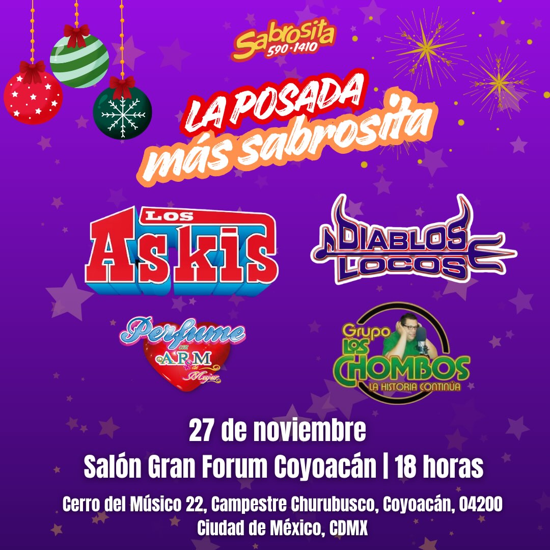 Antes de que comiences a romper la piñata y a cantar villancicos, vente a bailar al Gran Forum este 27 de noviembre a La Posada más Sabrosita con: